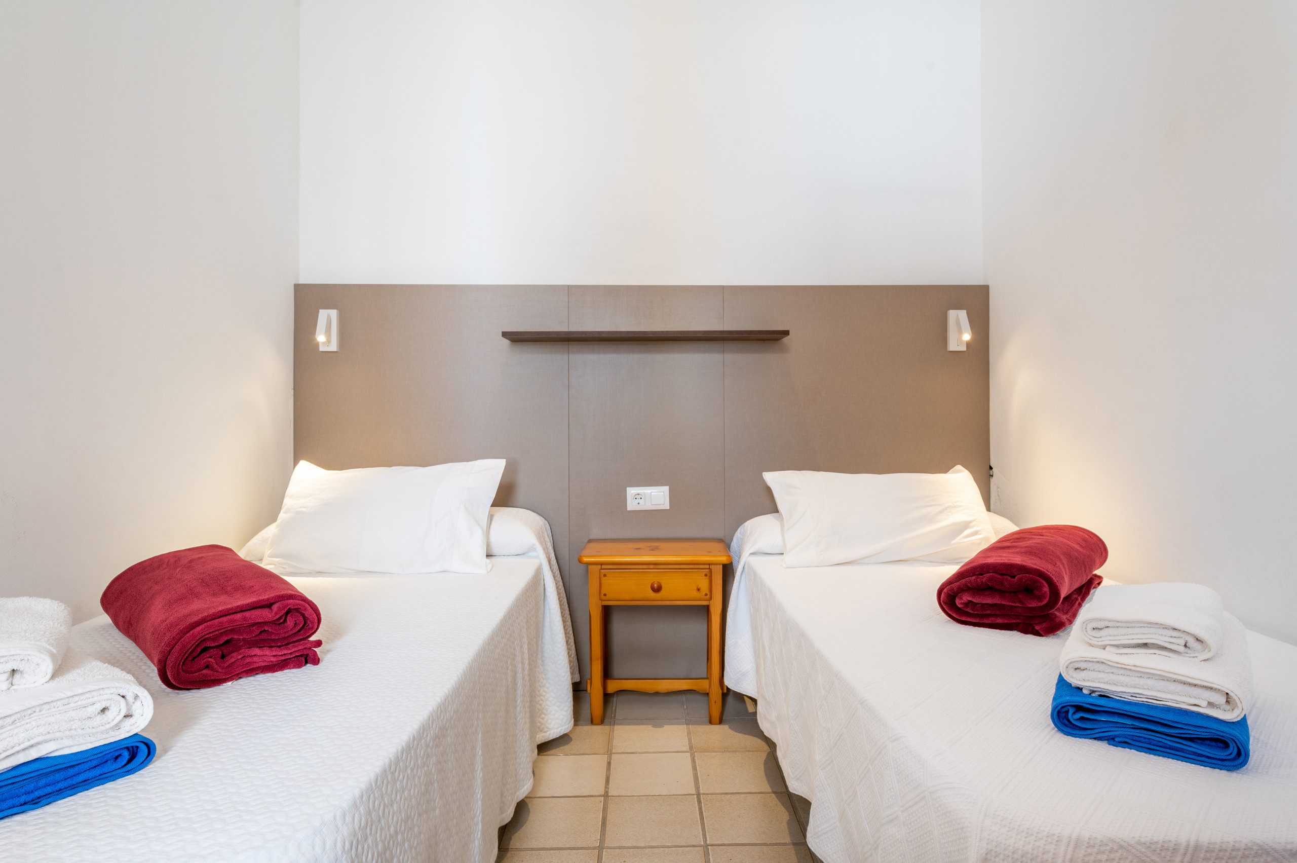 Wir treten in das Haus ein und befinden uns im Flur. Auf der einen Seite ist ein Schlafzimmer mit zwei Einzelbetten, auf der anderen Seite ein Schlafzimmer mit einem Einzelbett.Daneben haben wir ein vollständiges neu restauriertes Badezimmer mit Dusche,und anschliessend ein Doppelschlafzimmer mit Doppelbett.